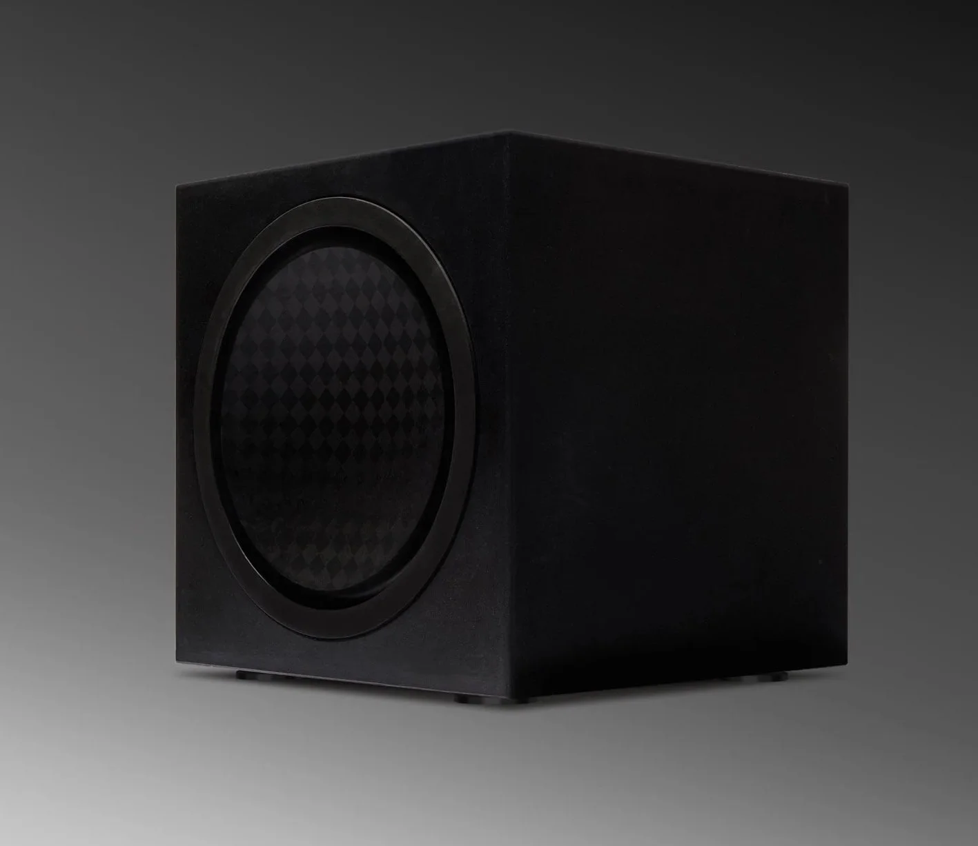 Designed for 2-channel integration — sits gracefully on custom isolation feet, with optional stacking for dual-sub setups